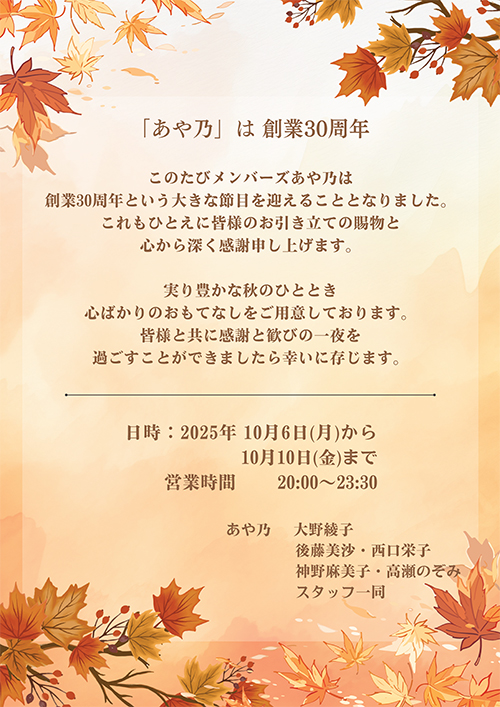 2025.10.01 10月6日(月)〜10月10日(金)30周年イベントを開催します |